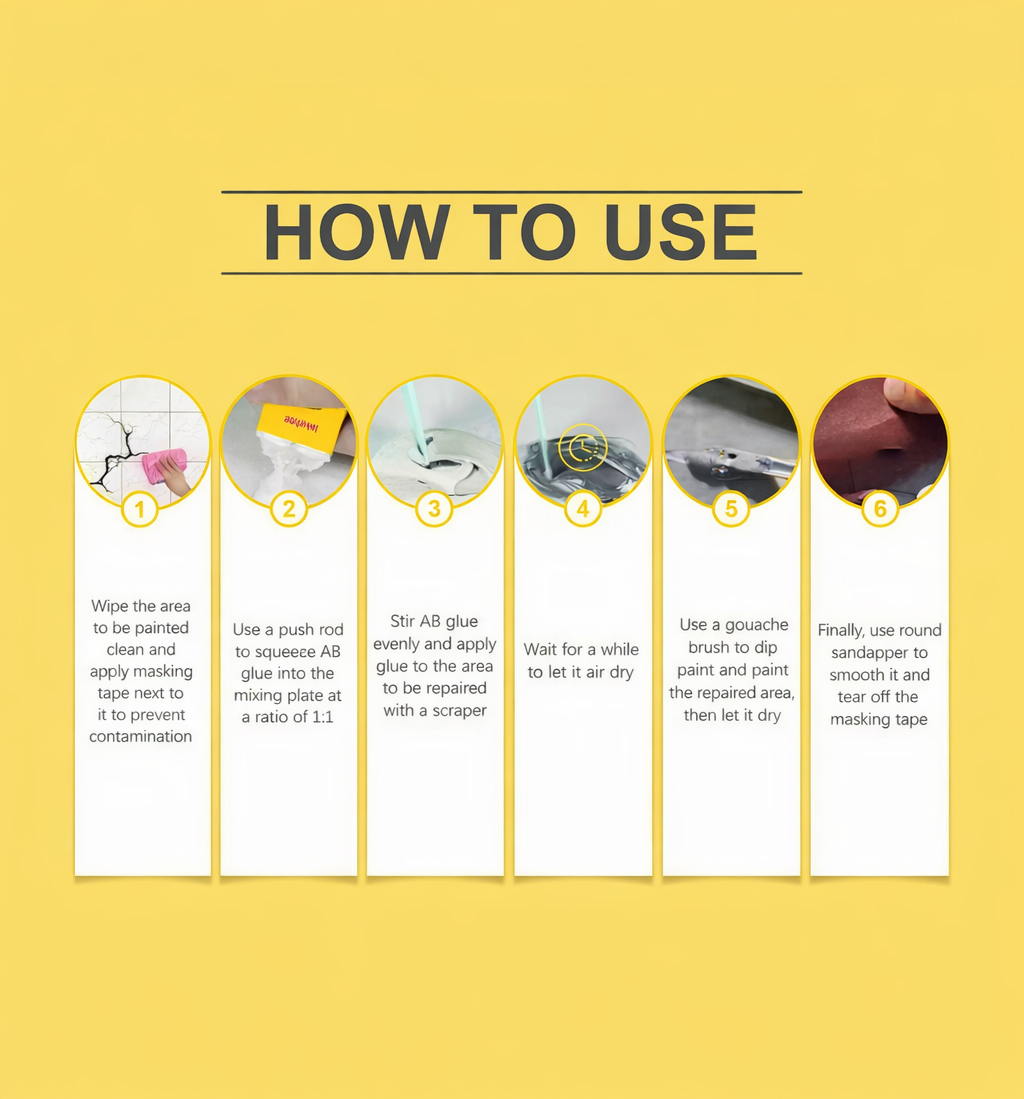 This easy-to-use repair kit helps you fix cracks, chips, and gaps with a smooth, professional-looking finish — right at home.